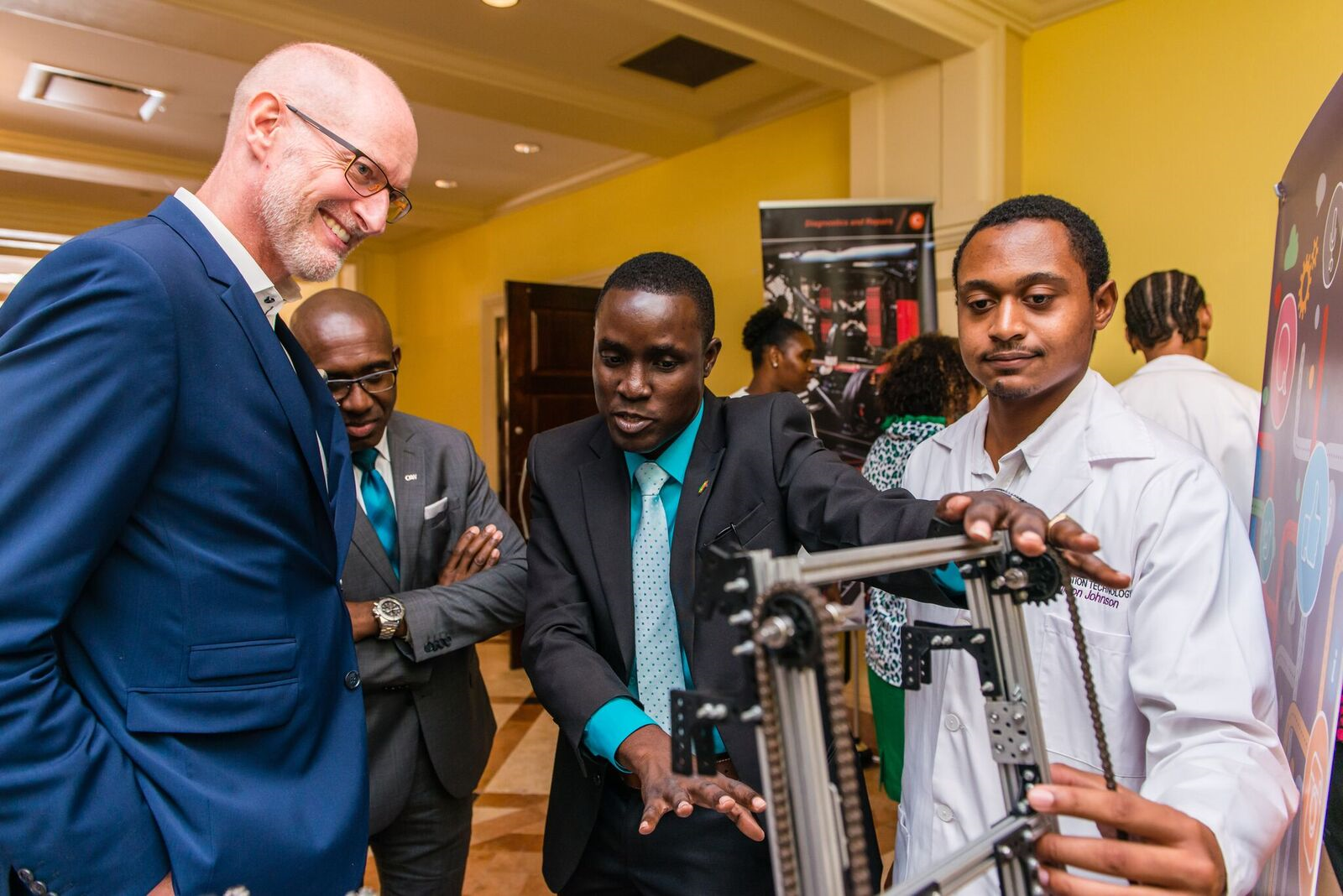 Magnus Ternsjo, C&W’s VP Central Caribbean gets a demonstration of cutting edge Robotics projects by Dr. Raymond Neil, Professor of IT and ICT students from the Clarence Fitzroy Brian College in St. Kitts as part of a Robotics display at the CTU’s 17th Caribbean Ministerial Strategic Seminars marking ICT Week held at the St. Kitts Marriott Resort on Wednesday, September 26, 2018.